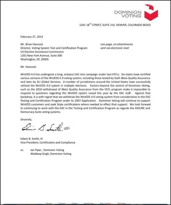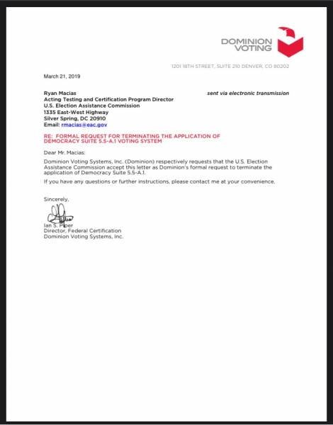 Attached below are various documents signed by or written by Ian Piper while employed by Dominion Voting Systems in order to verify the validity of my previous statements and accusations.