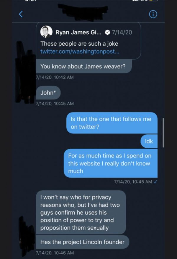 Another other young man, who will remain anonymous, spoke to me and a journalist to whom I passed the story along. In his messages with Weaver, this young man said that Weaver reached out to him with the promise of a job opportunity. He told Weaver would condescendingly call him “my boy.”