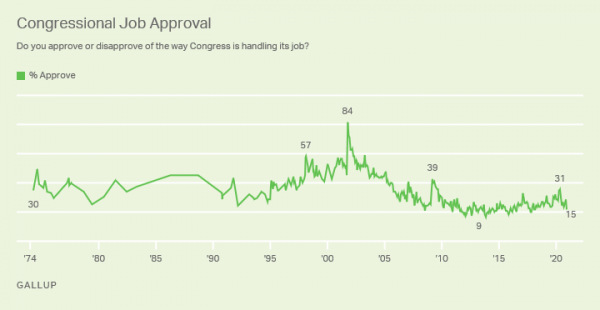 From a 39 percent approval rating in 2009 the Congressional Job Approval numbers from Gallup sank to just 9 percent by 2014.