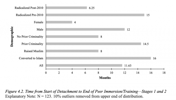 Brandeis University’s Jytta Klausen noted in 2016 that men especially took longer: taking a median of 52 months to radicalize.
